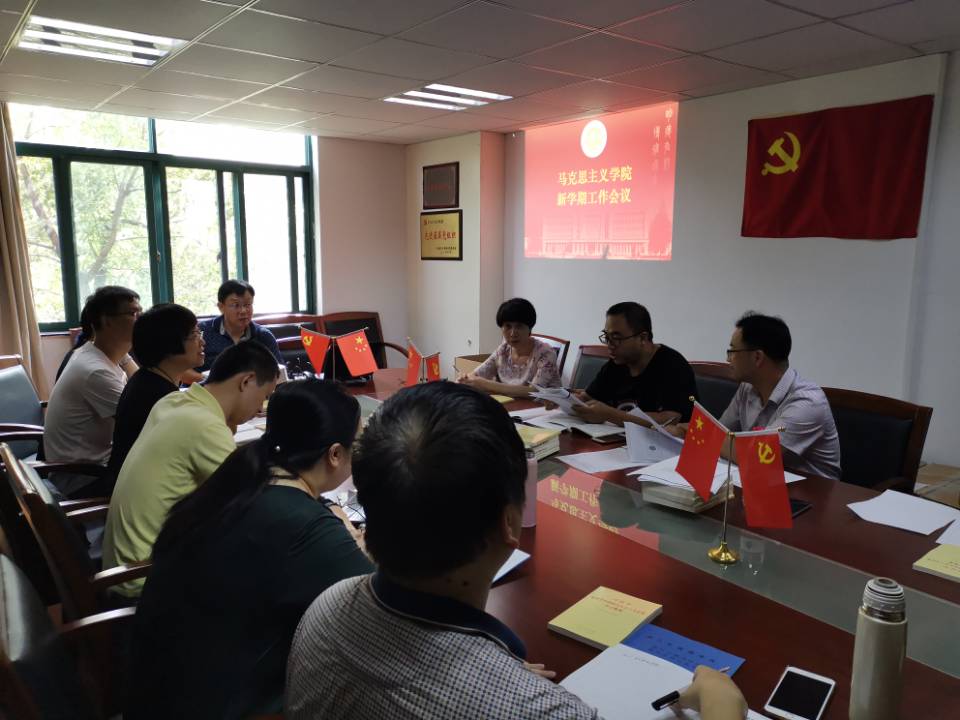 发展规划制定的目标,牢记使命,担当作为,提升本领,同时他还围绕学院班子和学校签订的党风廉政建设责任书、意识形态工作责任书内容,进一步强调了马院作为一个意识形态教育部门要在讲台讲堂教书育人空间、网络与实践育人空间等各方面当好优秀“战士”、在党风廉政建设方面做成标杆的重要性。会上同时对本学期理论学习与调研工作、持续深化“青年学子学青年习近平”学习教育,清廉教育进课堂、搬迁与新场地阵地美化工作、网站建设工作、中秋节慰问离退休人员等工作进行了部署。会议要求,全体马院人要坚持铸魂育人,筑牢马克思主义底色,要进一步提振精神,切实增强使命感、责任感和紧迫感,不忘初心、牢记使命,敢于斗争、甘于奉献,扎实做好新学期各项工作,以优异成绩献礼新中国成立70周年。