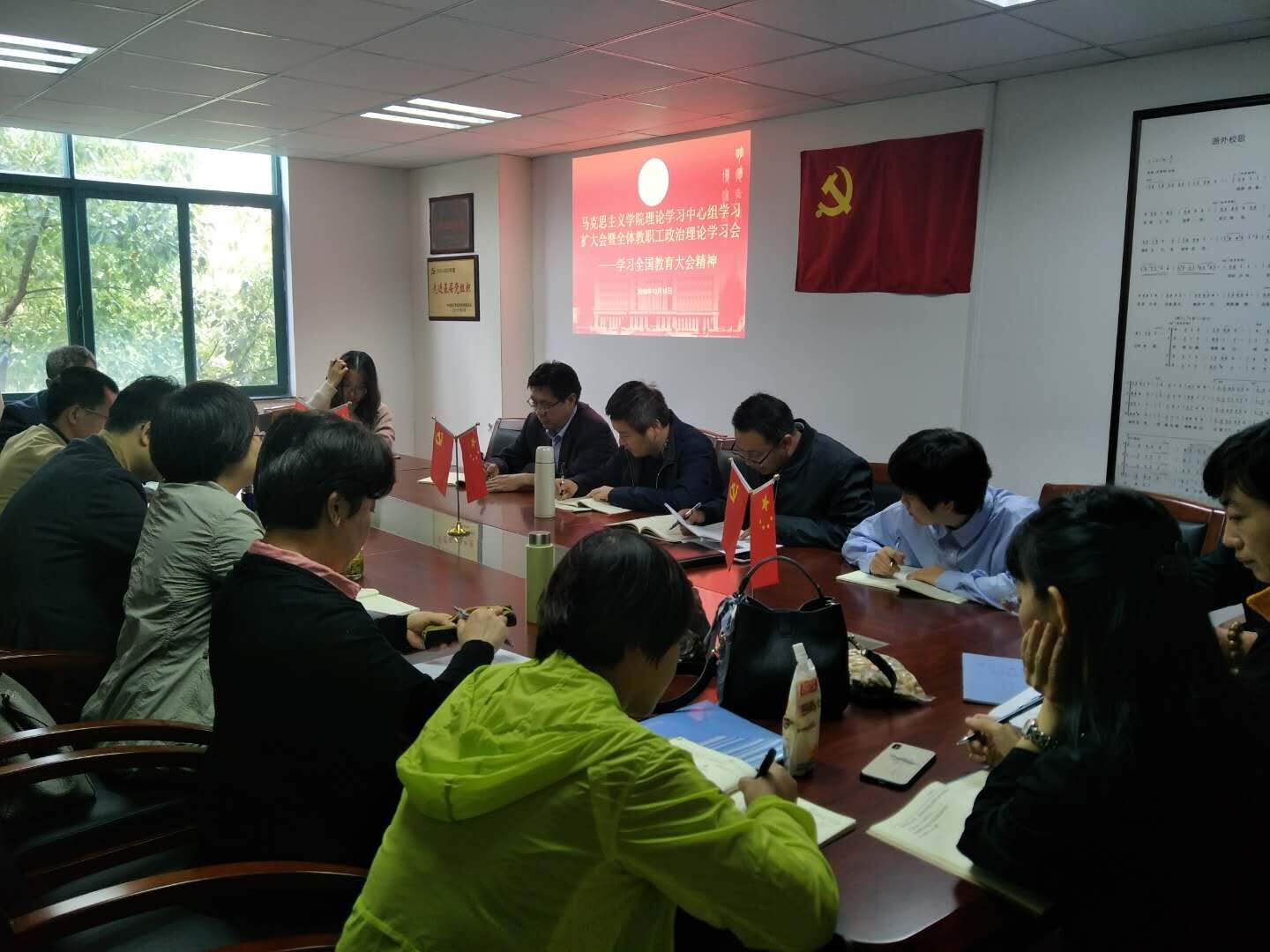 举行理论学习中心组学习扩大会暨教职工政治学习会,专题学习全国教育大会精神。学院党总支委员、副院长方浩主持会议。