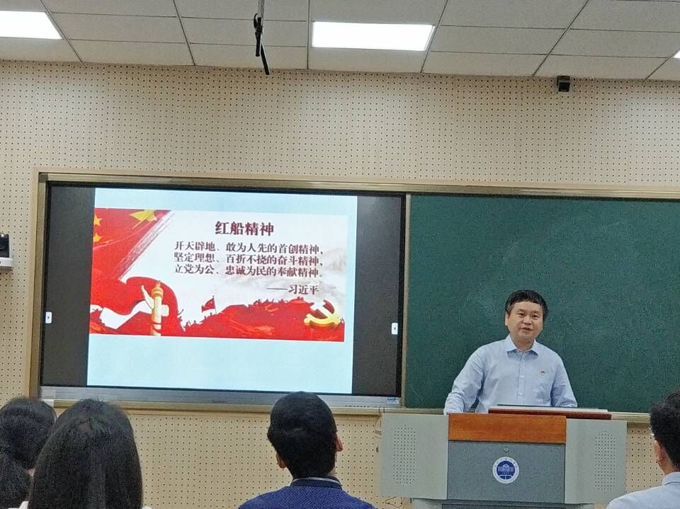 中国近现代史纲要教研室主任尹铁教授深刻阐释了红船精神,以及由红船起航的中国共产党的壮大发展历程;毛泽东思想概论和中国特色社会主义理论体系概论教研室主任陈锋博士结合时代背景,从青年的初心出发,精彩讲述了新青年的历史使命和时代担当。两位老师扎实的的理论功底和宣讲水平,赢得现场师生强烈认同和热烈掌声。