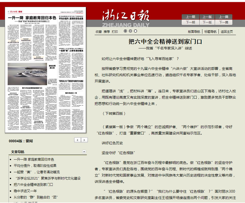 浙江日报:把六中全会精神送到家门口——我省“千名专家深入讲”综述