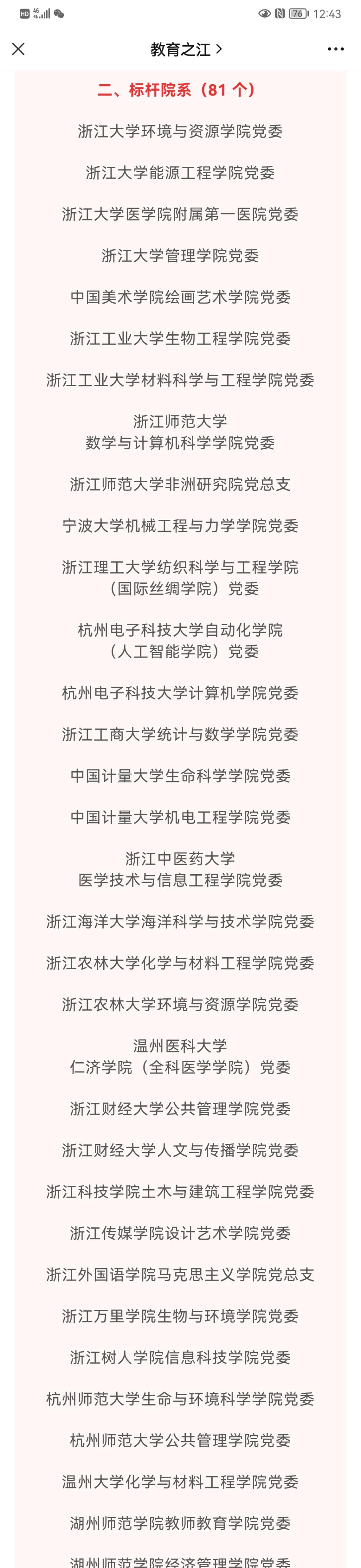 近日,浙江省教育厅公布了第二批全省高校党建工作示范高校、标杆院系、样板支部培育创建单位名单,51视频