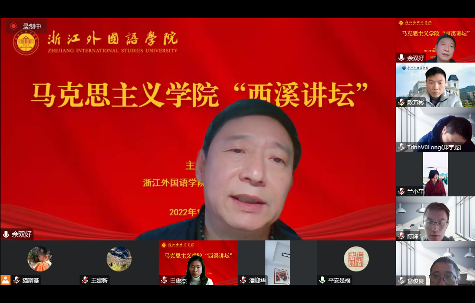 王建新院长对佘双好教授精彩的报告进行了总结。认为是一场思想深刻、学术含量高、启发性强的重要报告,给马院以及广大教师指明了在新时代、新征程中,教师自身发展、学科发展、思想政治理论课教学发展的目标、定位以及建设的路径,同时,深化了我们对马院建设、马学科建设以及思政课建设的新理解,对今后马院的发展具有重要指导意义。