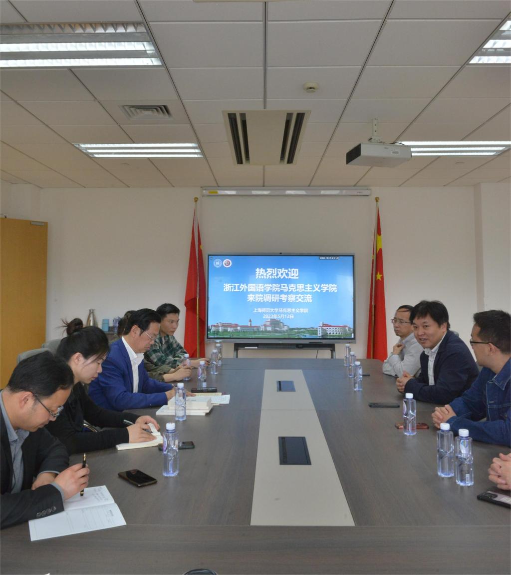 调研。座谈会上,学院院长王建新教授介绍了我校马院的发展历程与建设情况,上师大马院院长张志丹教授在介绍本院历史沿革的基础上,重点从顶层设计、团队打造、学科建设等多个维度,畅谈了自己对于马院建设的几点思考,双方就如何加强新时代马院建设展开了热烈讨论,并就推动大中小学思政课一体化建设等未来合作议题达成广泛共识。