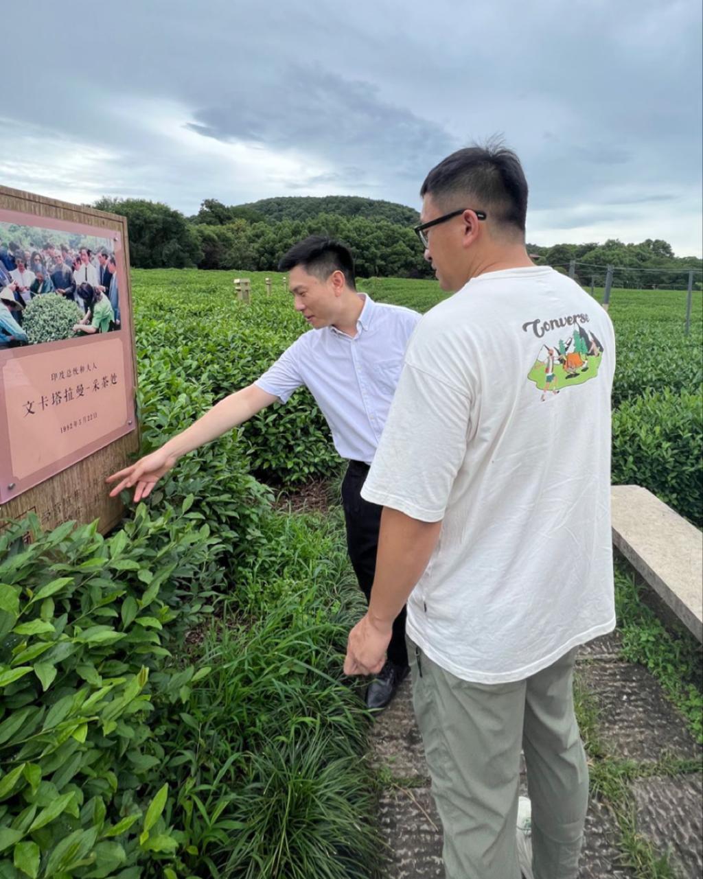 院长助理、特岗副教授欧万彬与英文学院师生6人前往西湖街道双峰村开展乡村振兴主题调研活动暨“大思政课”实践教学。西湖街道党工委副书记、办事处主任巩颖指导调研;西湖街道龙井茶保护中心主任钱海娟,西湖街道龙井茶保护中心闾怡清,双峰村党委书记、村委主任李明,双峰村党委副书记、村委副主任陈涛陪同调研。