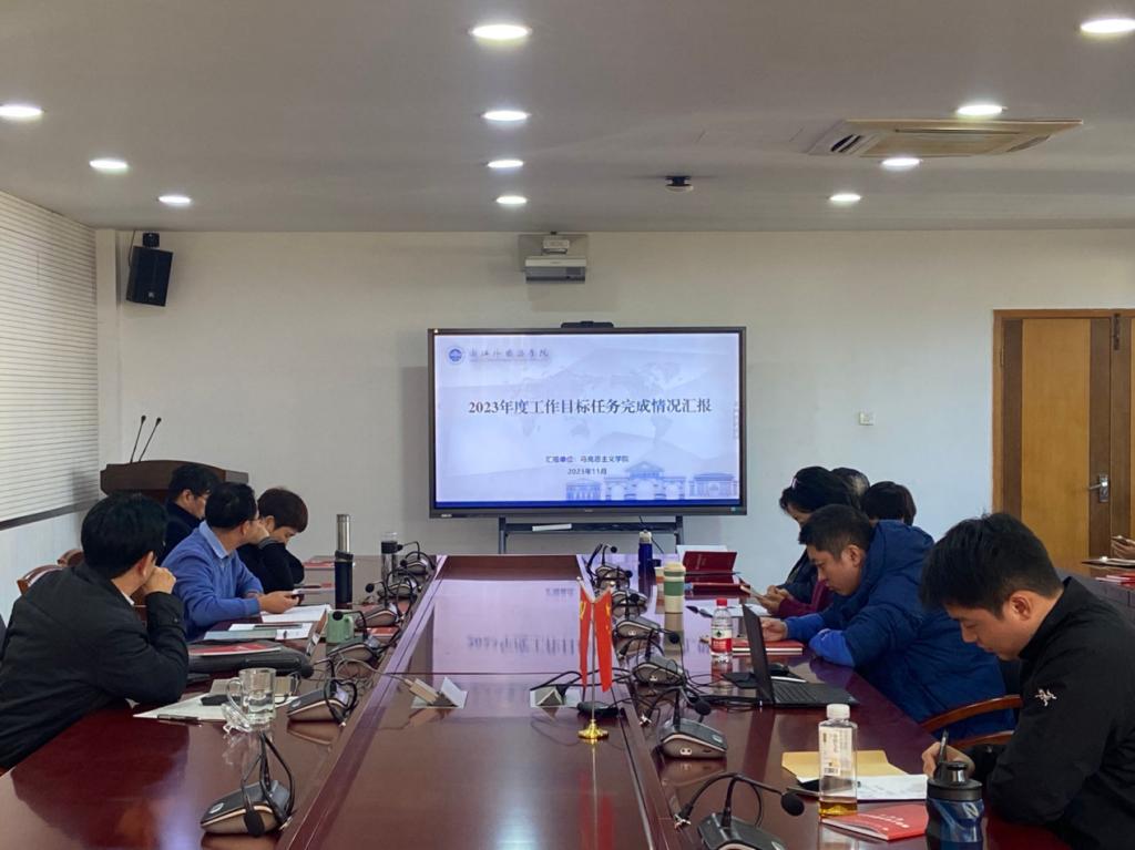 为落实学校行政工作例会精神,高质量推动学院指标任务落实,12月7日下午,学院开展专题工作推进会,结合本年度学院指标任务完成情况,部署落实相关工作。会议由党总支书记毛立峰主持,马院全体教职工参加。