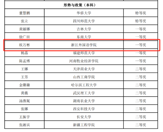 欧万彬副教授获形势与政策(本科)组一等奖。