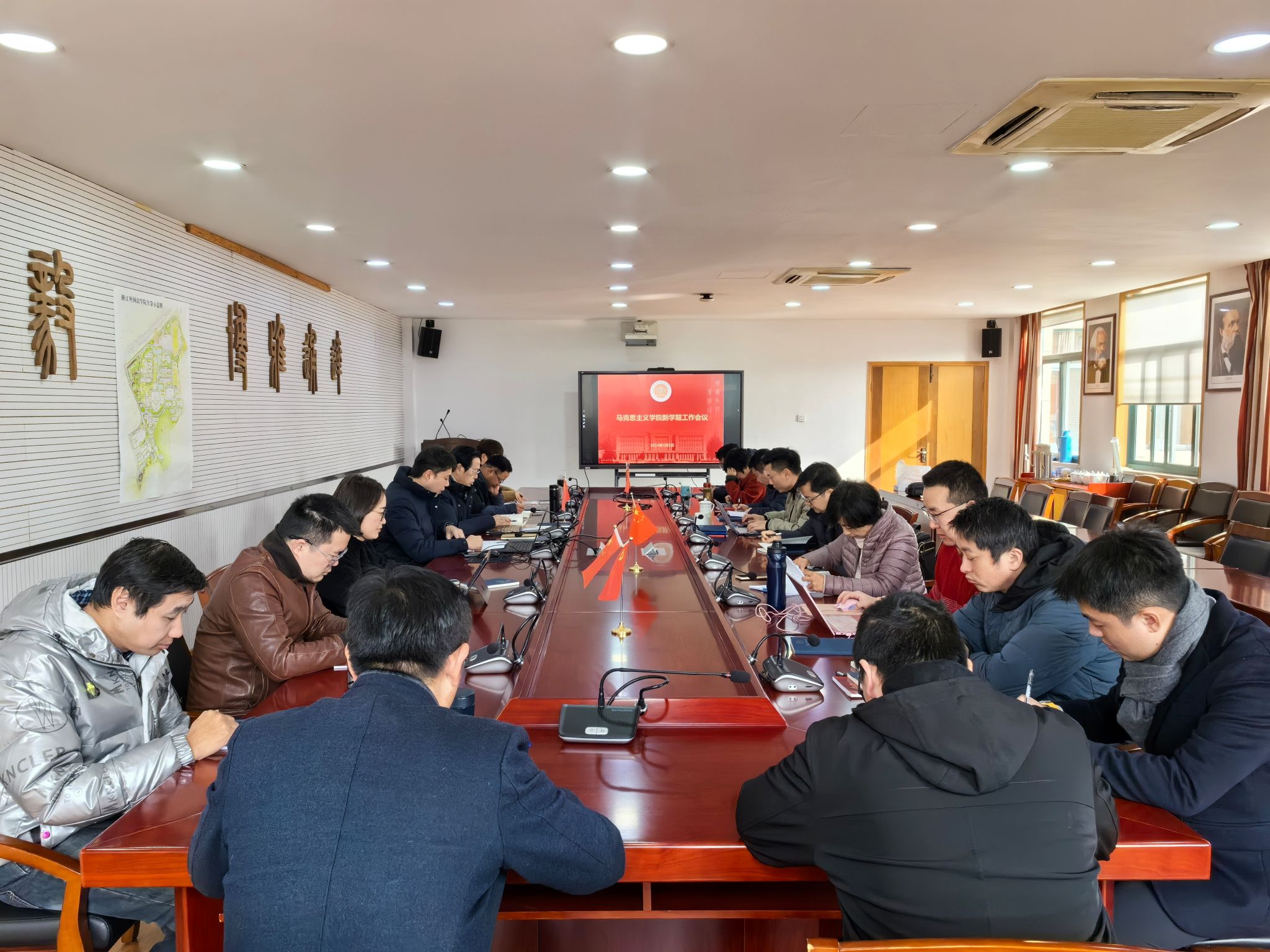 3月2日上午,马院召开新学期工作会议,学院党政领导班子,全体教职工参加会议。会议由党总支书记毛立峰主持。