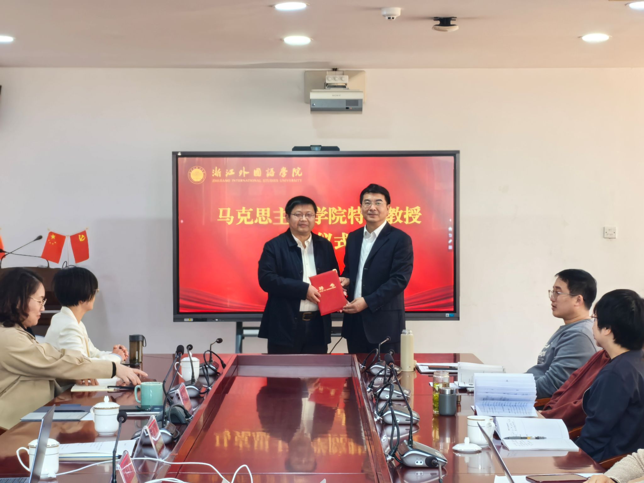 校党委副书记徐勇出席讲座并为项久雨教授颁发特聘教授聘书。徐勇对项教授受聘为马院特聘教授表示感谢。