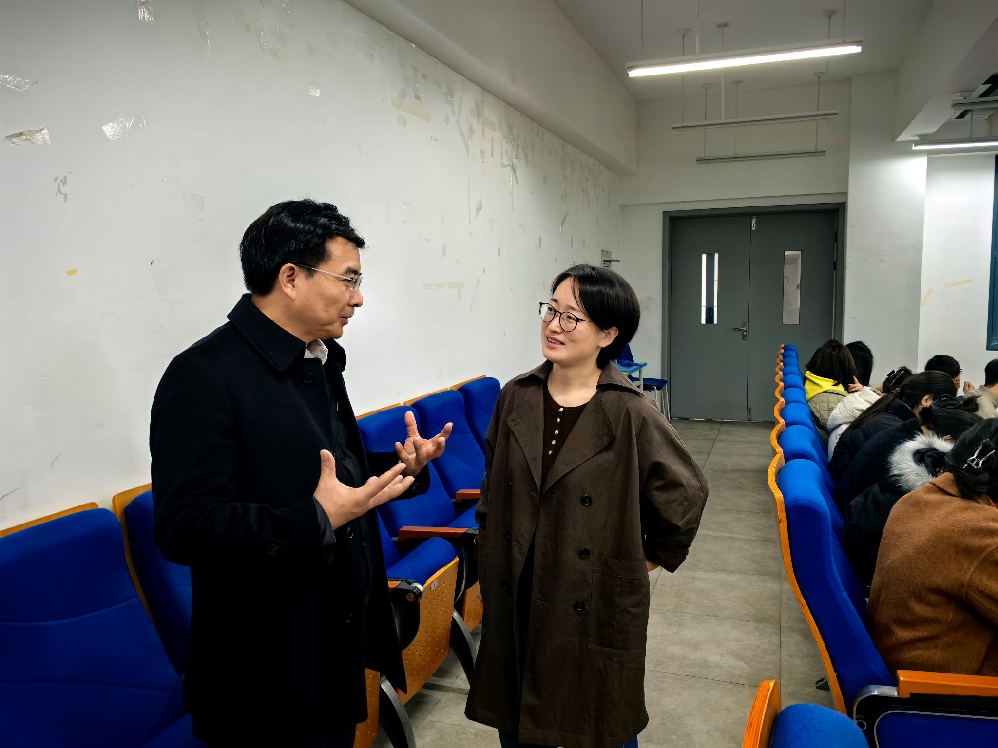 课后徐勇书记与赵春兰老师进行了交流,对老师在开学第一课中的精心准备和出色表现给予了肯定,同时鼓励她要进一步分析学生学情,了解学生需求,把握新时代学生的群体性特征,努力打造受学生欢迎的思政“金课”。