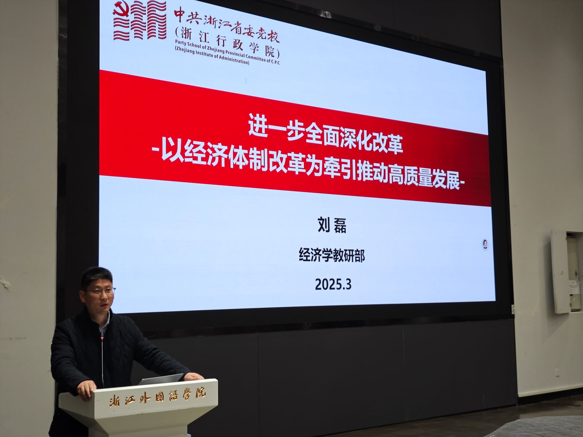 邀请中共浙江省委党校经济学教研部刘磊副教授,为三百余名学生带来一场主题为“进一步全面深化改革:以经济体制改革为牵引推动高质量发展”的精彩报告。讲座由马院教师葛俊良主持。