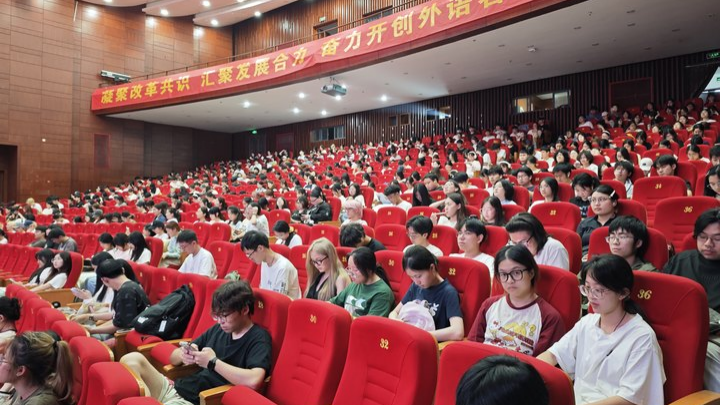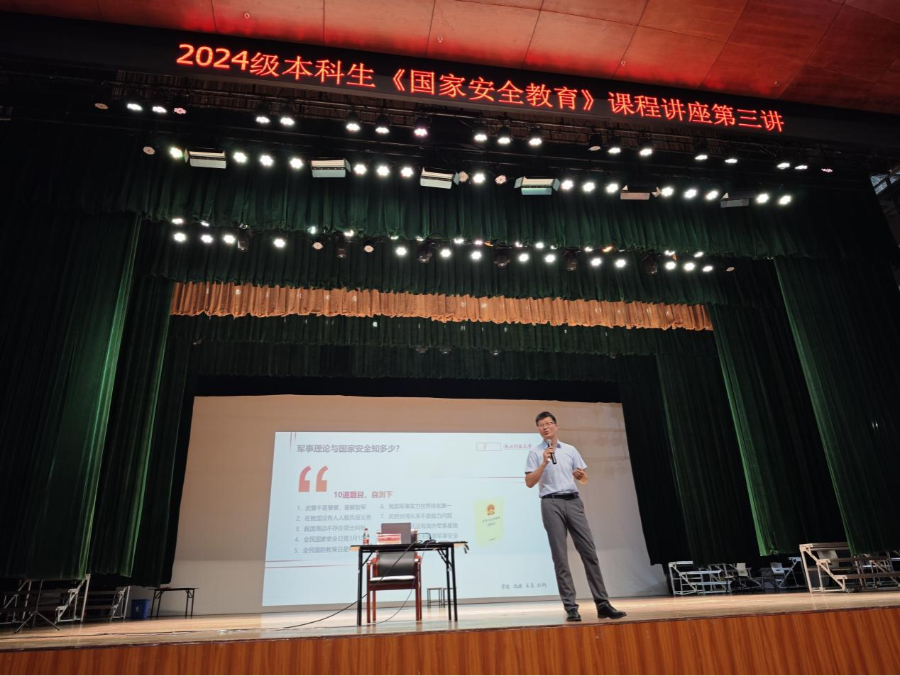 副院长武林副教授,在追梦堂为七百余名2024级本科生带来一场以“擎总体安全之旗,铸军事理论之盾——《新时代的中国国家安全》解读”为主题的精彩报告。讲座由马院教师葛俊良主持。