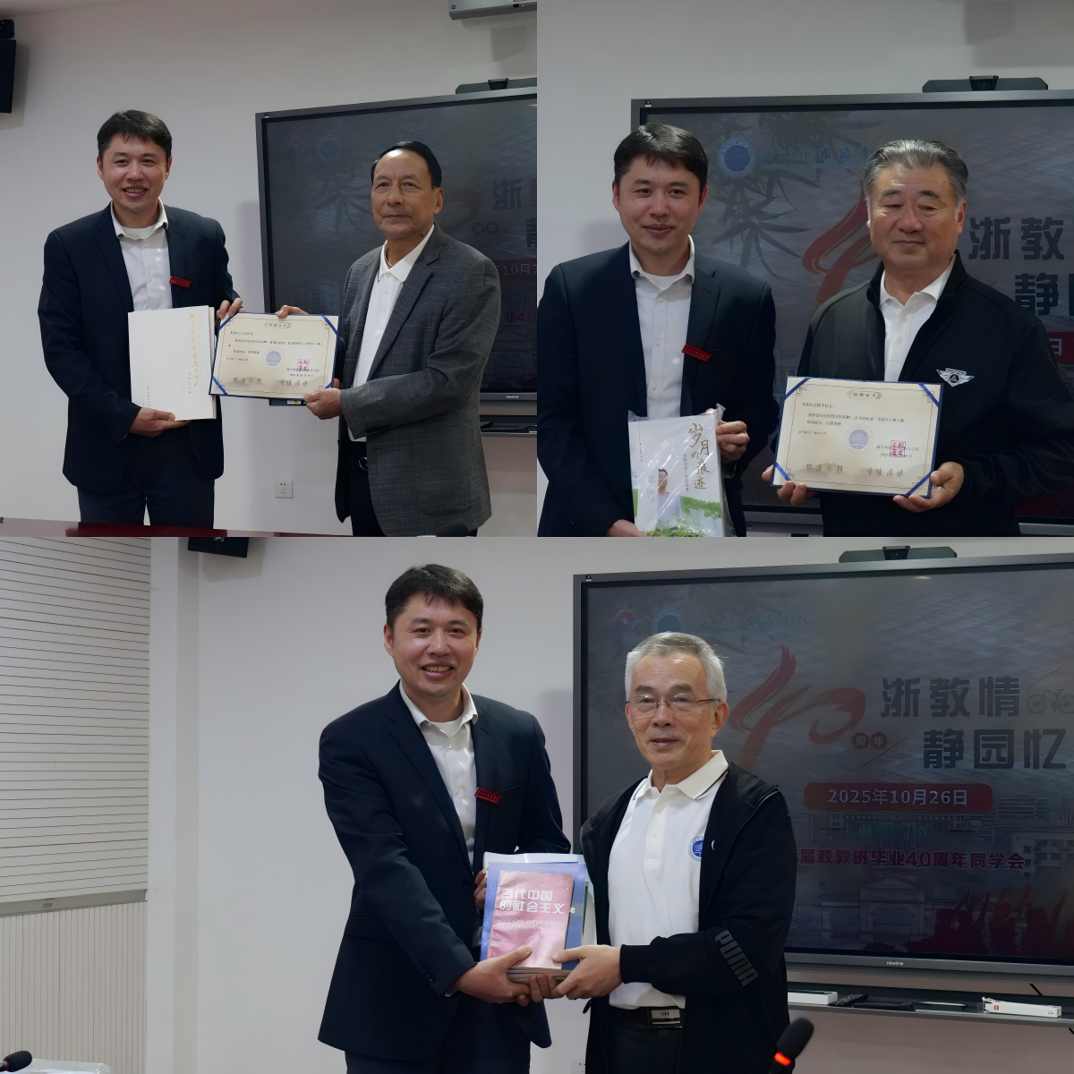 喜迎七秩华诞的喜庆日子里,85届政教班毕业40周年同学会在望院A412教室温情启幕,时任领导和任课老师、班主任胡浙平、骆伯巍、徐颂列、赵庆荣、邵宝华等应邀出席同学会,51视频