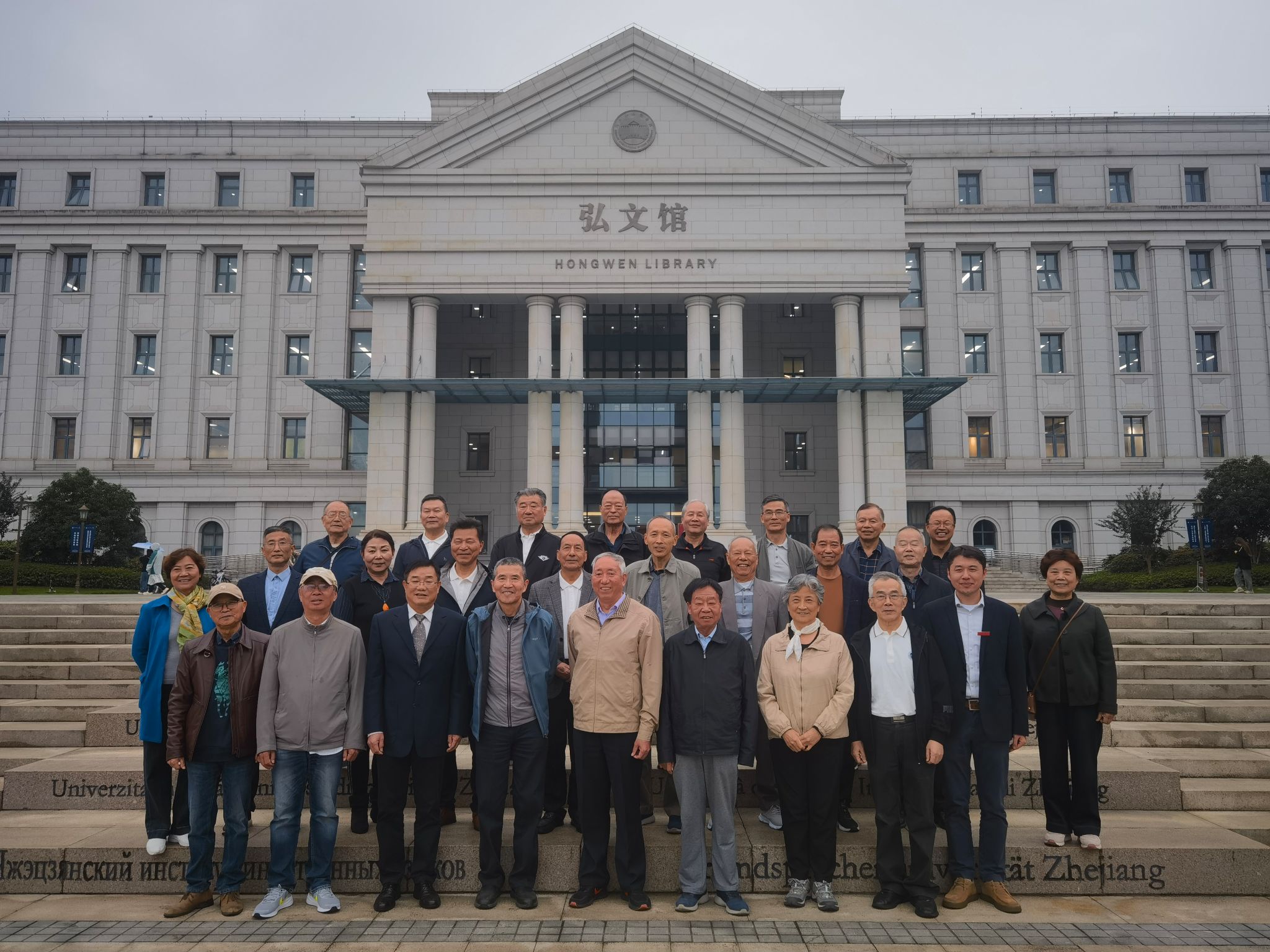 会后,师生集体在图书馆前合影留念。