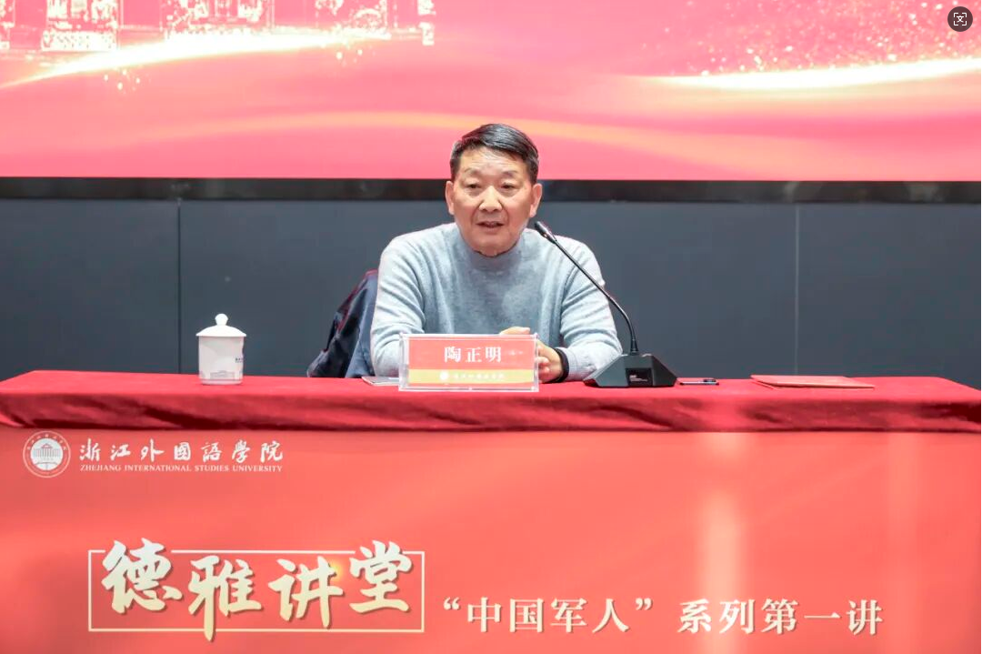 12月3日下午,望院C116报告厅内气氛热烈。原江西省委常委、原江西省军区政委陶正明少将做客“新时代真理的味道”德雅讲堂“中国军人”系列第一讲,为我校师生作题为“人生的支撑点”的主题讲座。