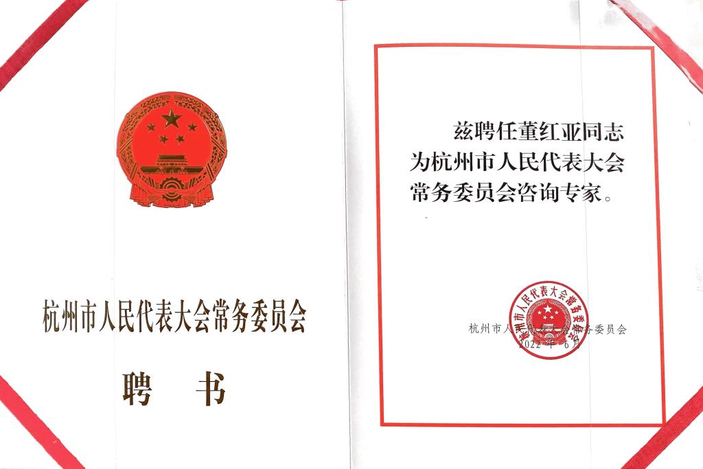 6月13日上午,杭州市人大常委会召开咨询专家座谈会。座谈会上,通报了市人大常委会有关工作情况,并向咨询专家颁发聘书。马院董红亚教授再次受聘为“杭州市第十四届人大常委会咨询专家”,归属社会建设专家组。为杭州争当高质量发展共同富裕示范区城市范例,发挥把脉问诊、评估论证、建言咨政的智囊作用。
