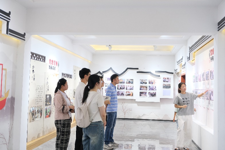 上午九时许,外桐坞村村助理仇吴菁引领师生代表开启深度文化探访之旅。从青砖黛瓦的文化礼堂到承载红色记忆的朱德纪念馆,再到飘着糯米香气的年糕工坊,一行人沿着青石板路感受着“中国最美乡村”的历史脉搏。党总支委员李强在交流中表示:“外桐坞村既有朱德元帅四次视察的红色基因,又有年糕制作技艺的非遗传承,期待与高校共同打造文旅融合新样板。”