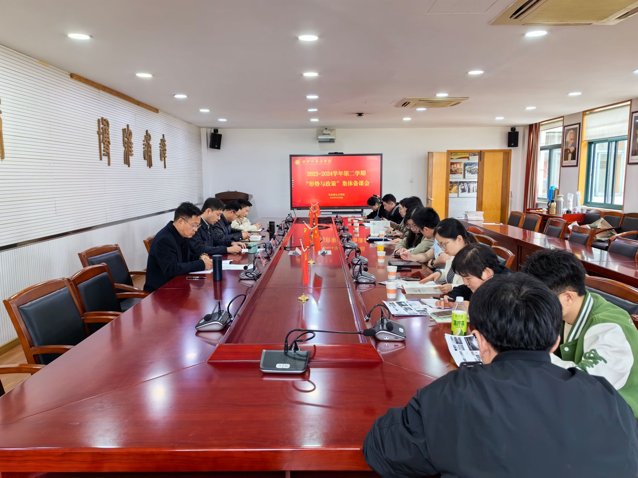 组织召开本学期《形势与政策》集体备课会。会议由马院党总支书记毛立峰主持。