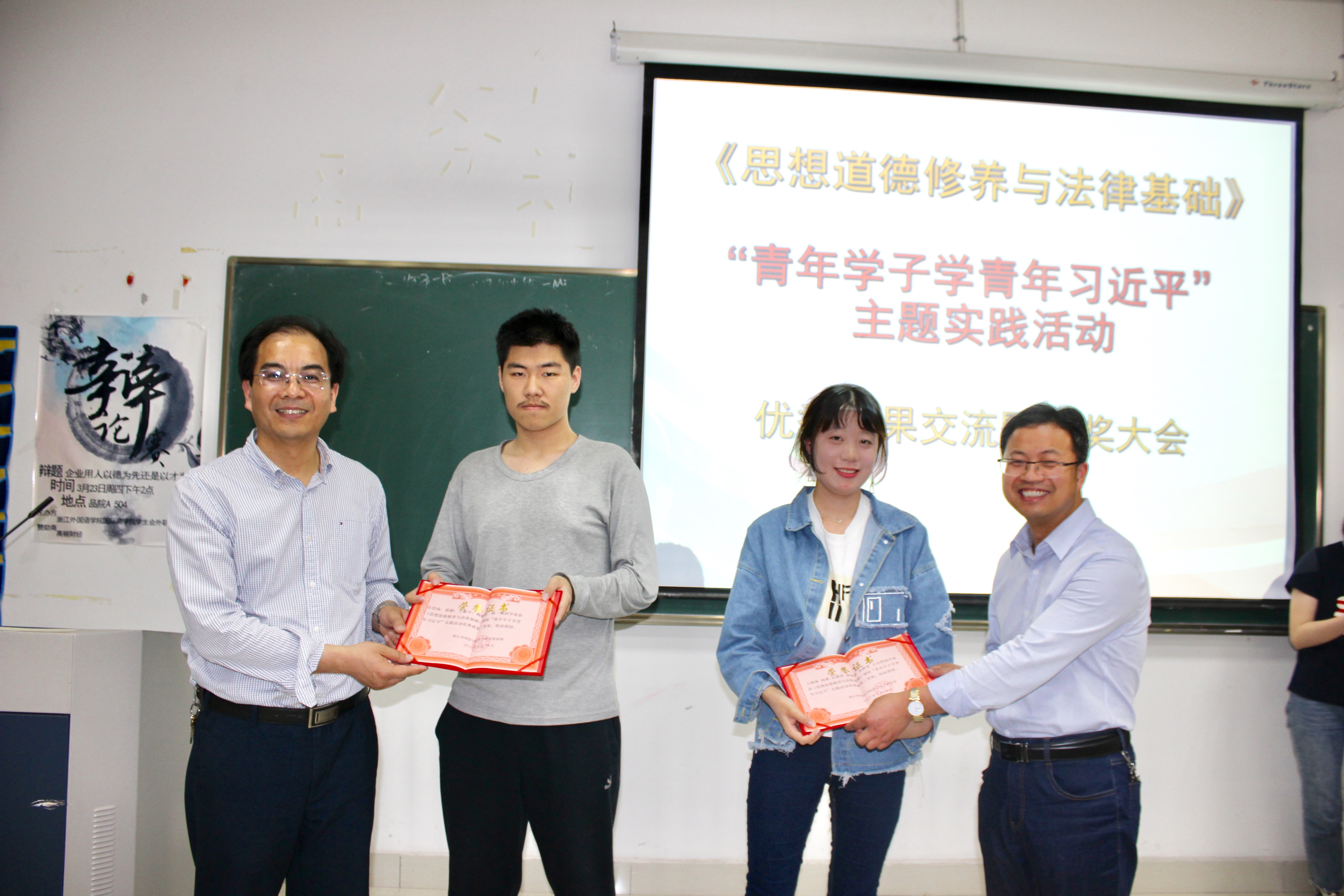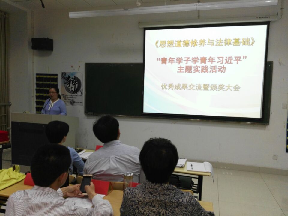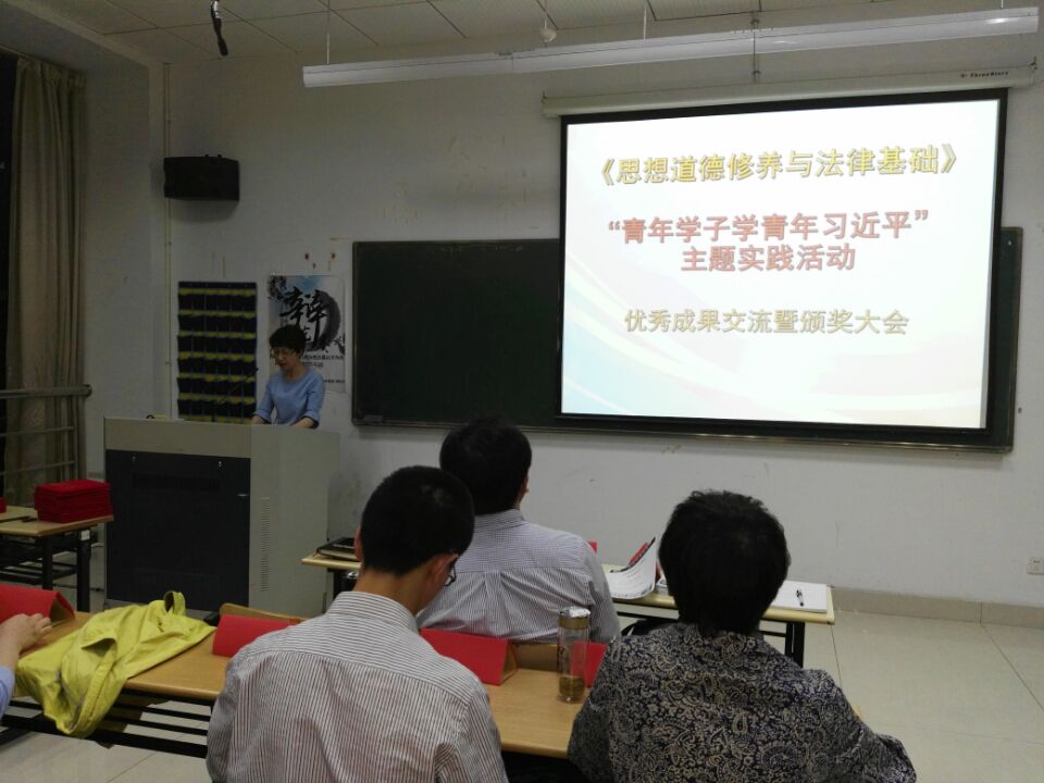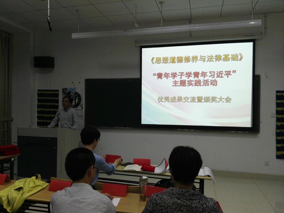 4月18晚,在品院A504教室,社科部《思想道德修养与法律基础》课程组举行“青年学子学青年习近平”主题实践活动优秀成果交流暨颁奖大会。会议由《思想道德修养与法律基础》教研室主任兰小平老师主持,宣传部徐勇部长、社科部潘迎华主任、宣传部门、各教研室老师和部分学生代表共100余人参会.