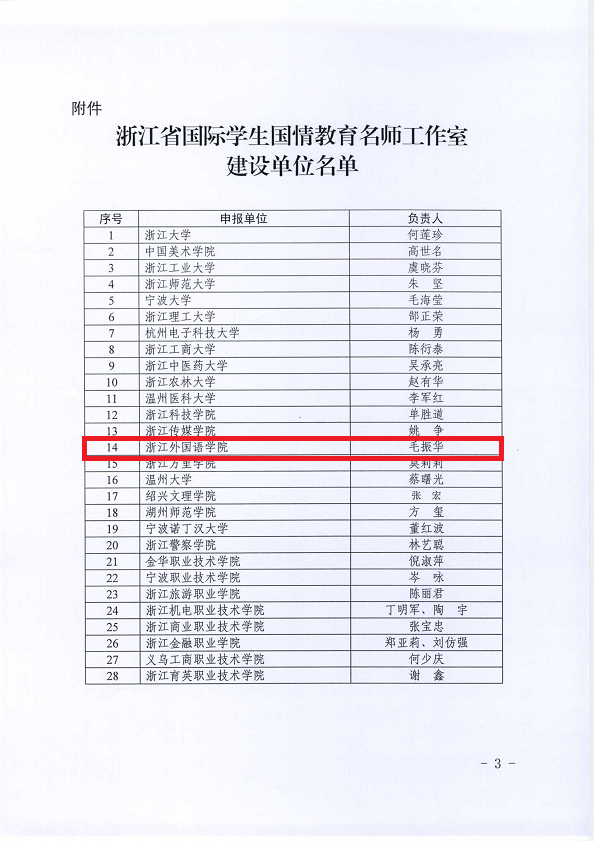 近日,浙江教育厅发布《浙江省教育厅办公室关于确定国际学生国情教育名师工作室建设单位的通知》(浙教办函〔2022〕213号),马院院长毛振华教授主持的国际学生国情教育名师工作室建设项目获批立项。