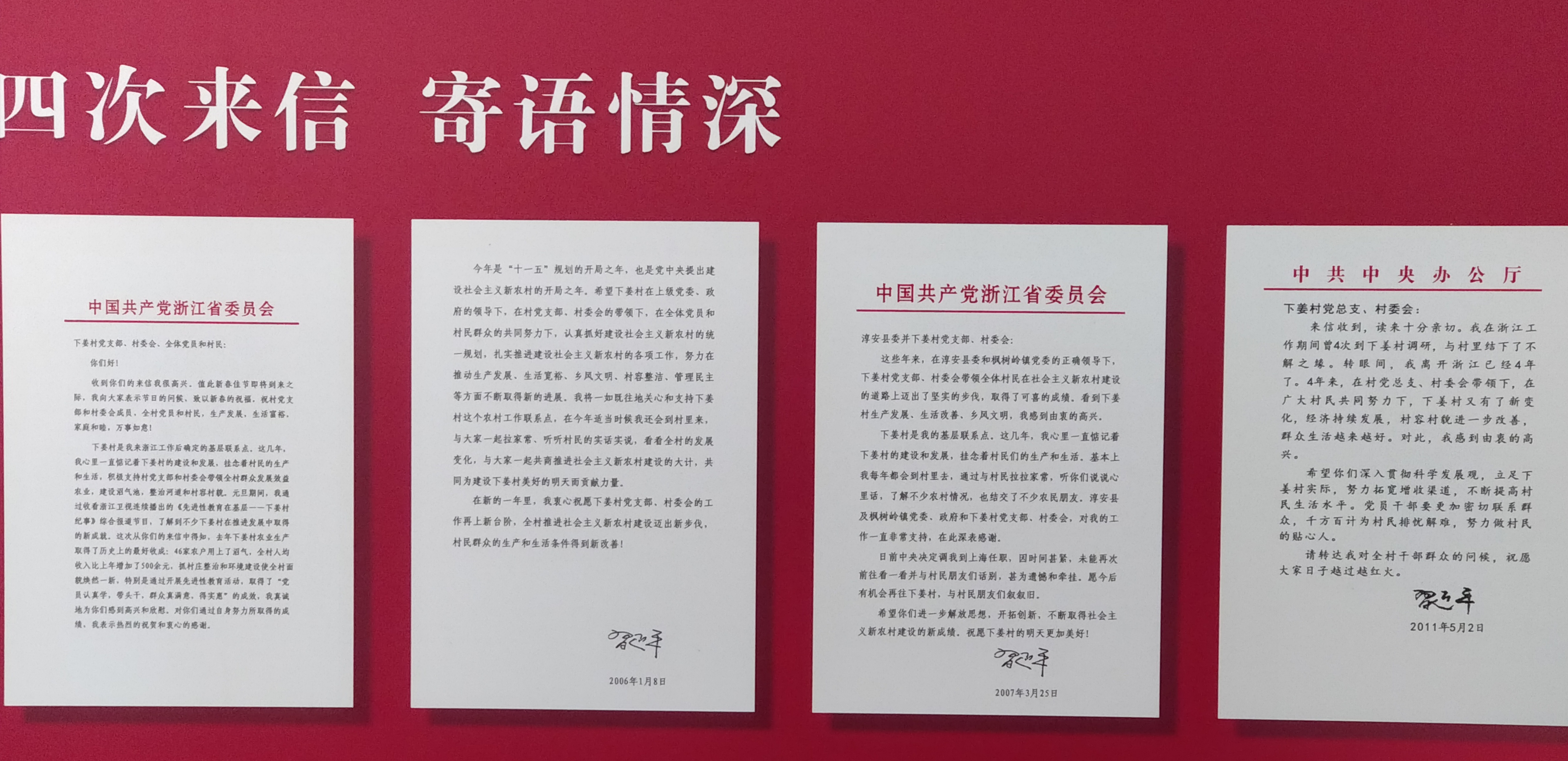 马院的党员教师们在当地讲解员的带领下参观了村史展览馆、思源亭、考察了下姜村的村容村貌。下姜村作为习近平同志在浙江工作时的基层联系点,他曾四次到访、四次致信下姜,期望这里“经济持续发展,村容村貌进一步改善,群众生活越来越好”。继任省委书记赵洪祝、夏宝龙、车俊也都把下姜村作为基层联系点,多次去村里蹲点调研,为它的发展出谋划策。展览馆一幅幅生动的照片,一个个感人的故事,述说着下姜村翻天覆地的变化。这个昔日“土墙房、半年粮,有女不嫁下姜郎”的穷困山村,现已蝶变为“浙江最美乡村”、“全国生态家园示范村”、全国“创先争优”先进农村党组织的典型村。