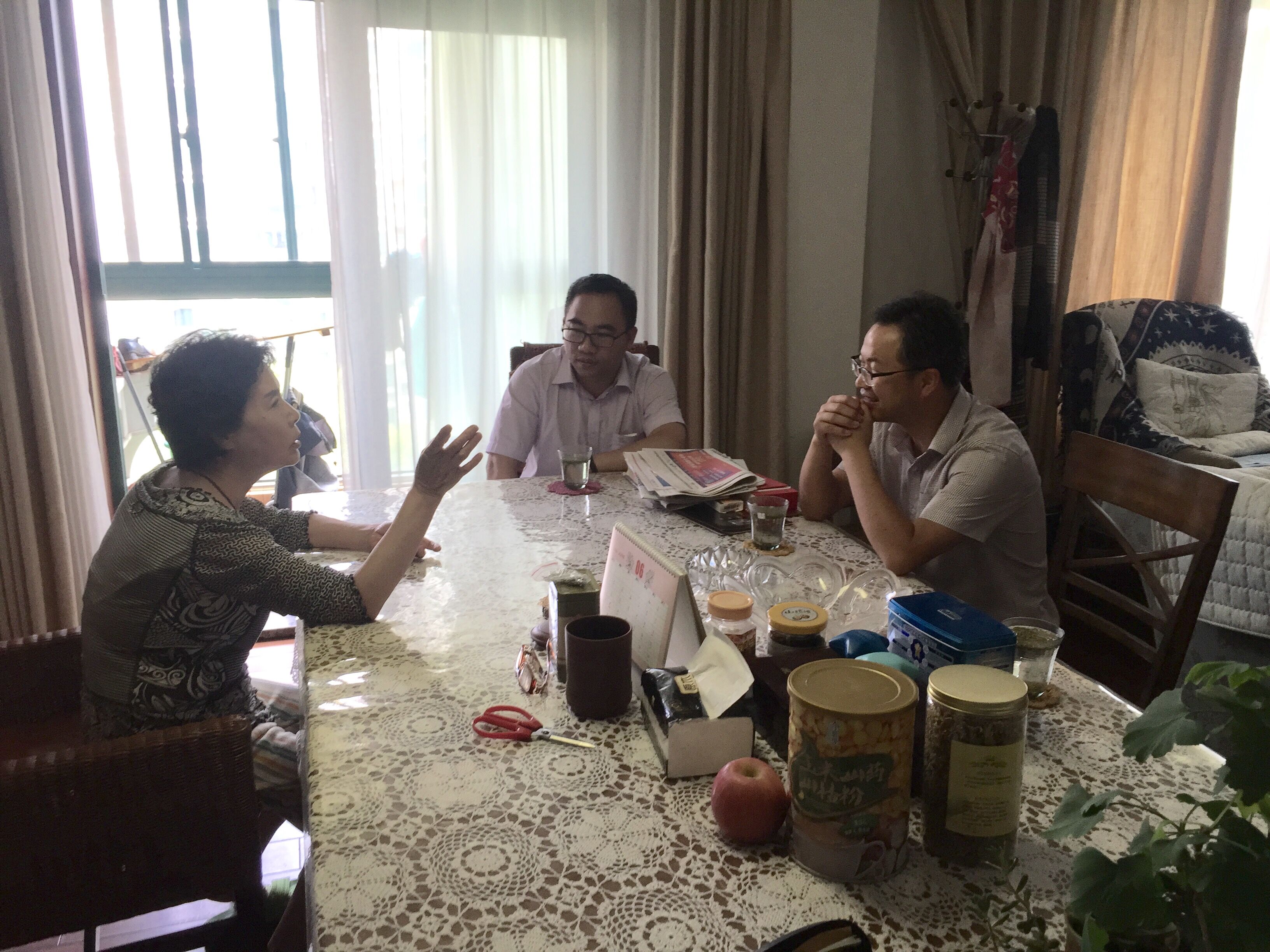 在慰问活动中,学院党总支副书记周明宝,总支委员、副院长方浩一行走访看望了于文法,蔡廉,王治安三位老同志,亲切地询问了他们的身体状况、生活和家庭情况,向老同志、老党员们通报了近期学校工作的特色发展动态和学院发展情况,详细了解他们的思想动态,认真听取他们的建议和意见,并耐心细致地解答了老同志所关心、关注的问题,进一步坚定他们对党的信仰、对学院未来发展的信心。老同志非常感谢学院党组织对他们的关心和关怀,衷心祝愿我们党的事业、学院的发展蒸蒸日上、前程似锦。