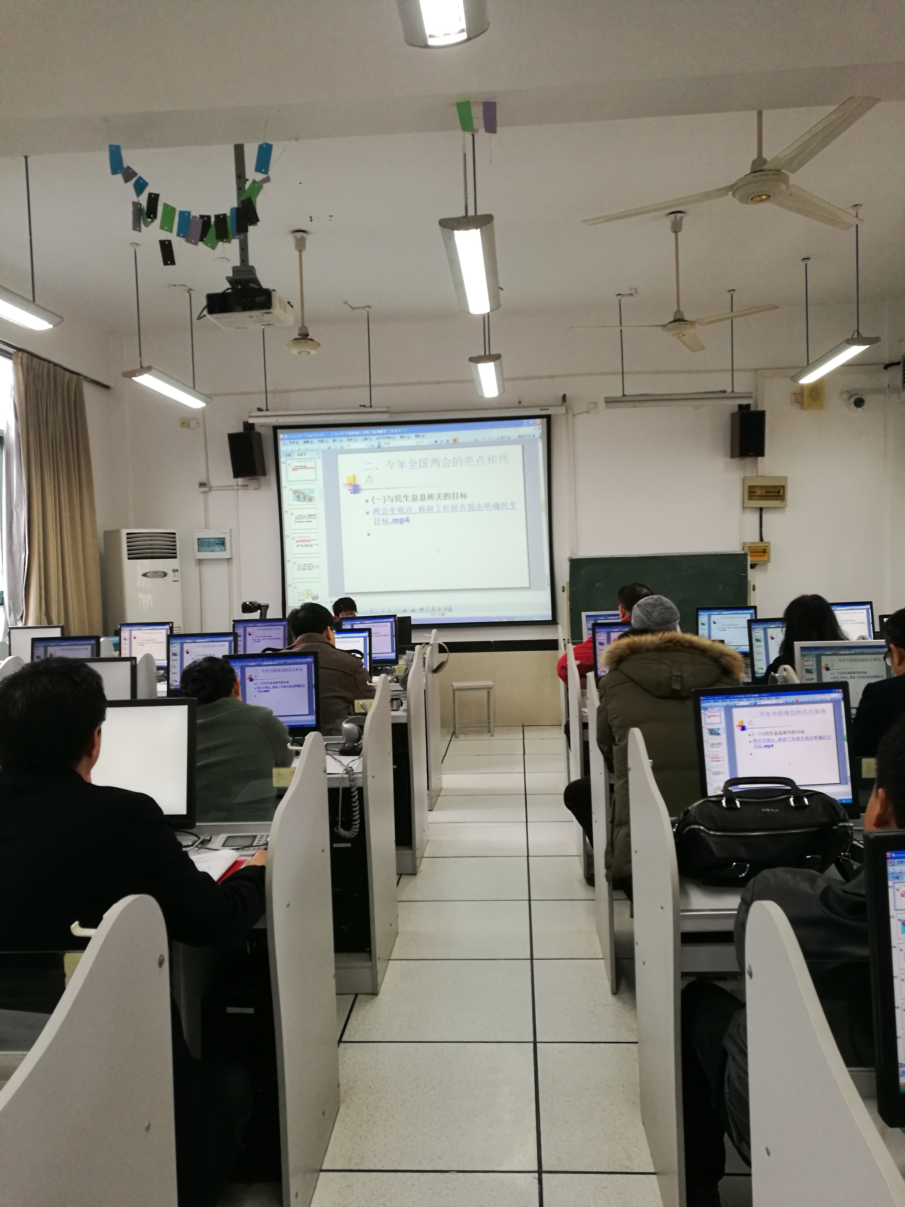 《形势与政策》教研室朱秀芳教授主讲全国、浙江省“两会”精神学习。朱教授重点介绍了“两会”部署的2017年全国、浙江省的主要任务,强调了本年度全国、全省工作的重点, 并提出了在思政课教学中应讲解的内容。潘迎华主任主讲了省委书记夏宝龙在省高校思想政治工作会议上的讲话,并根据讲话精神提出了本部门思政课教学应坚持“四个意识”,强调了师德师风教育的重要性,并根据省里要求将学生社会实践与我省“拆、治、归”工作结合,引导学生了解省情,认识中国特色社会主义在浙江的实践,将同学们的专业教育与意识形态教育结合起来,增强学生的道路自信、理论自信、制度自信和文化自信。