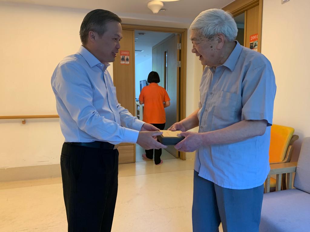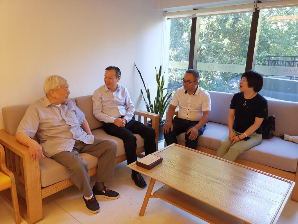赵文波副书记与王治安老师促膝交谈,拉家常、问寒暖、叙发展,关切询问他的身体状况和生活情况,亲手送上国家授予的庆祝中华人民共和国成立70周年纪念章,送上学校的慰问金,并对王治安老师为学校事业发展做出的贡献表示了充分肯定和诚挚感谢,对他表现出的崇高师德表达了敬意。王治安老师虽然已经89岁高龄,但谈及学院发展历史如数家珍。赵文波副书记十分感动老教师对学校工作的关心、支持,也衷心祝愿他身体健康、阖家幸福。